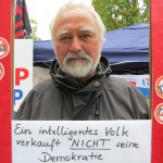 Rund 3,3 Unterschriften für die Europäischen Bürgerinitiative, etwa eine Viertel Million TeilnehmerInnen auf der Berliner Demo gegen TTIP und CETA – das waren die Höhepunkte der letzten Wochen. Ist damit alles vorbei? Von wegen! An den Konstanzer MitMachTagen haben auch wir einen Infostand aufgebaut – und fotografiert, wer sich weiterhin gegen die geplanten Handelsabkommen TTIP, CETA und TiSA wehren wird …