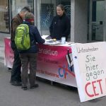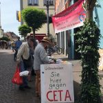 29. September 2018: bundesweiter CETA-Aktionstag, auch in Konstanz. Mit dabei: attac Singen, BUND Konstanz, Weltladen Konstanz, Seebrücke Konstanz, Initiative Foodsharing, StadtPlan Zukunft, die Linke Liste, Café Mondial.