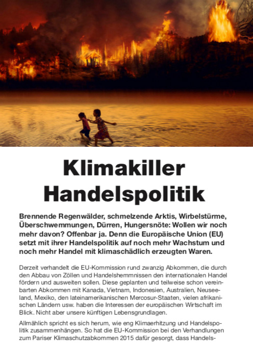 Neben dem Standardflyer verteilen wir auch Flugblätter oder Beilagen, die wir den Flyern beilegen. So haben wir nach der US-Präsidentschaftswahl 2016 ein neues Flugblatt erstellt. Und zuletzt auch aktuelle Zettel – beispielsweise zu den Klimafolgen der Handelspolitik. Zu unserem Aufruf an die baden-württembergischen Grünen: Januar18_Beiblatt