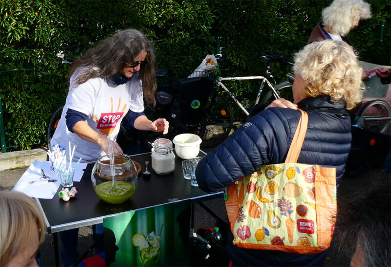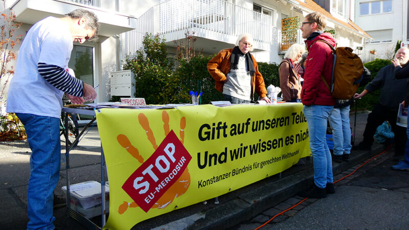Di., 23. Mai 2023: Aktion anläßlich der Lateinamerika-Tage des Netzwerks Gerechter Welthandel – gegen die EU-Abkommen mit Mercosur, Chile und Mexiko. Auf der Konstanzer Marktstätte.